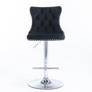 Swivel Velvet Barstools Adjusatble Seat Height From 25-33", Modern Upholstered Chrome Base Bar Stools With Backs Comfortable Tufted For Home Pub And Kitchen Island (Set of 2) - Black