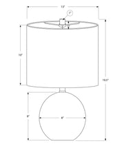 - Chic Design: Sphere-shaped table lamp with a concrete base and textured finish, paired with an drum shade and finial for a contemporary look.
