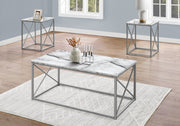 Table Set, Coffee, End, Side, Accent, Living Room, Marble Look Laminate, Contemporary & Modern (Set of 3)
