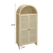 Tall Arched Kitchen Pantry, Arched Storage Display Cabinet With 2 Drawers & Adjustable Shelves, Rattan Door Versatile Storage Cabinet For Kitchen, Dining Room - Natural