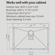 30" Single Bowl Topmount Kitchen Sink - Brushed Nickel