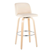 Toriano - Contemporary Fixed Height Barstool With Swivel & Round Footrest (Set of 2) - Natural / Cream