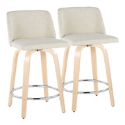 Toriano - Contemporary Fixed Height Counter Stool Swivel With Round Footrest (Set of 2) - Natural / Cream