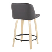 Toriano - Contemporary Fixed Height Counter Stool With Swivel, Round Footrest (Set of 2) - Gray / Black / Natural
