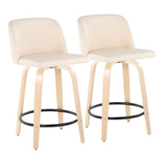 Toriano - Contemporary Fixed Height Counter Stool With Swivel With Round Footrest (Set of 2) - Cream / Natural