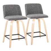 Toriano - Contemporary Fixed Height Counter Stool With Swivel, Square Footrest (Set of 2) - Gray / Black / Natural