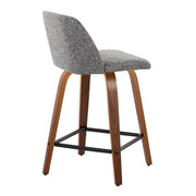 Toriano - Mid-Century Modern Fixed Height Counter Stool With Swivel With Square Footrest (Set of 2) - Walnut / Gray