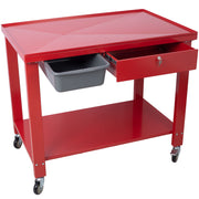 Transmission Teardown Work Station 1 / 2 Ton Capacity Sloping Drain Table Locking Drawer Removable Drain Basin Full-Width Lower Shelf Four 4" Caster Wheels - Red
