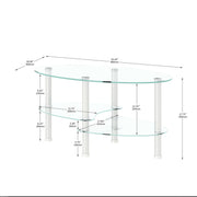 Transparent Oval Glass Coffee Table, Modern Table With Stainless Steel Leg, Tea Table 3-Layer Glass Table For Living Room - Transparent / White