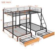 Full Over Twin & Twin Bunk Bed, Triple Bunk Bed With Drawers And Guardrails - Black