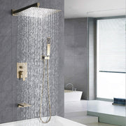 Luxury Bathroom Shower System With 12" Rain Shower Head Handheld Mixer - Brushed Gold