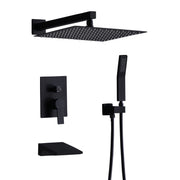 All Metal Tub Shower Faucet Set With 12" Rain Shower Head And Handheld Spray Combo, Wall Mounted - Matte Black