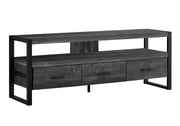 - Design and Finish: The TV stand boasts a contemporary, industrial-inspired design, finished in a rustic black reclaimed-look, offering a modern touch to any living space.