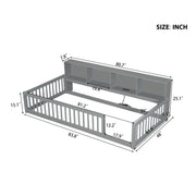 Twin Long Floor Bed With Storage Cabinets And USB Ports - Gray