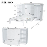 Twin Size Murphy Bed With Bedside Shelves And Wardrobe - White