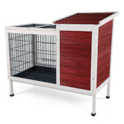 Two Tier Wooden Indoor / Outdoor Rabbit Cage For Small Animals With Runway And Leak-Proof Plastic Tray - Red