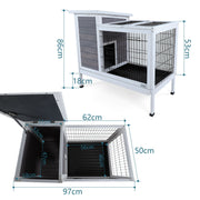 - Two-Tier Wooden Indoor/Outdoor Rabbit Cage for Small Animals with Runway and Leak-Proof Plastic Tray.