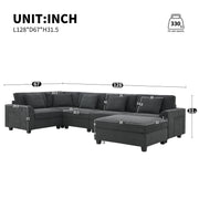 U Shaped Sectional Sofa 6 Seat Couch Set With Oversized Ottoman, Hidden Armrest Storage And Cup Holders USB Charging Ports Wide Seat Sofa - Black