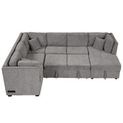 U-Shaped Sectional Sofa Pull Out Sofa Bed With Two USB Ports, Two Power Sockets, Three Back Pillows And A Storage Chaise For Living Room