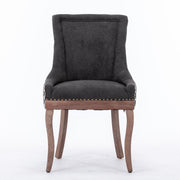 Ultra Side Dining Chair, Thickened Fabric Chairs With Neutrally Toned Solid Wood Legs, Bronze Nail Head, (Set of 2) - Beige / Patterned