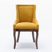 Ultra Side Dining Chair, Thickened Fabric Chairs With Neutrally Toned Solid Wood Legs, Bronze Nail Head (Set of 2) - Golden Yellow