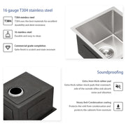23" Undermount Kitchen Sink, 16 Gauge, 9" Deep Single Bowl - Brushed Nickel