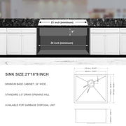 21" Undermount Kitchen Sink, 16 Gauge, 9" Deep Single Bowl - Brushed Nickel