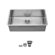 30" Undermount Kitchen Sink, 16 Gauge, 9" Deep Single Bowl - Brushed Nickel