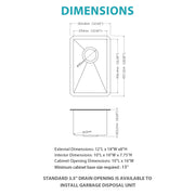 12" Undermount Kitchen Sink, Deep Single Bowl - Brushed Nickel
