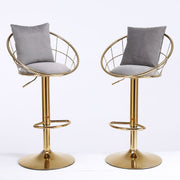 Velvet Bar Chair, Pure Gold Plated, Unique Design, 360 Degree Rotation, Adjustable Height, Suitable For Dining Room And Bar, (Set of 2) - Gray