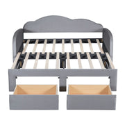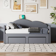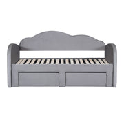 Twin Size Upholstered Daybed With Cloud-Shaped Backrest, Trundle & 2 Drawers And USB Ports - Gray
