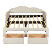 Twin Size Upholstered Daybed With Cloud-Shaped Backrest, Trundle & 2 Drawers And USB Ports - Beige