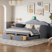 Upholstered Daybed With Cloud-Shaped Backrest, Trundle & 2 Drawers And USB Ports