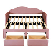 Twin Size Upholstered Daybed With Cloud-Shaped Backrest, Trundle & 2 Drawers And USB Ports - Pink