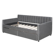 Twin Size Upholstered Daybed & Drawers, Slat Support - Gray