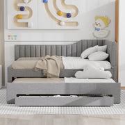 Full Size Upholstered Daybed With Trundle And 3 Drawers - Gray