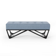 Upholstered Ottoman With Button Tufted Waffle Stitch And Black Geometric Legs - Light Blue