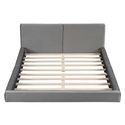 Queen Size Upholstered Platform Bed, Grounded Bed With Solid Frame - Gray