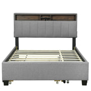 Full Size Upholstered Platform Bed With Storage Headboard, Twin Size Trundle & 2 Drawers And A Set Of Sockets & USB Ports - Gray