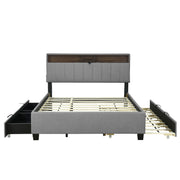 Queen Size Upholstered Platform Bed With Storage Headboard, Twin Long Size Trundle & 2 Drawers And A Set Of Sockets & USB Ports - Gray