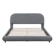 Queen Size Upholstered Platform Bed With Thick Solid Frame And Curve-Shaped Design - Gray