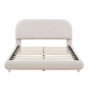 Queen Size Upholstered Platform Bed With Thick Solid Frame And Curve-Shaped Design - Beige