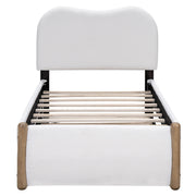 Full Size Upholstered Platform Bed With Wood Supporting Feet And Twin Size Trundle - White