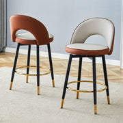 Modern Spliced Upholstered Rotatable Bar Chair With Black Metal Legs For Dining Room And Kitchen (Set of 2) - Brown / Light Gray