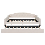 Upholstered Tufted Full Size Daybed With Twin Trundle - Beige
