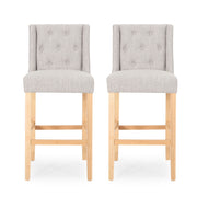 Vienna - Contemporary Fabric Tufted Wingback Counter Stools, (Set of 2) - Light Gray / Natural