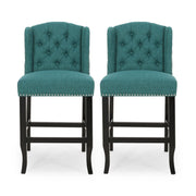 Solara - Fabric Tufted Counter Stool With Nailhead Accents (Set of 2) - Teal