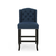 Solara - Fabric Tufted Counter Stool With Nailhead Accents (Set of 2) - Navy Blue