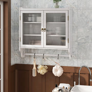 Vintage Double Door Wall Cabinet With Three Tiers Storage And Towel Rack - White Washed