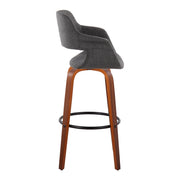 Vintage Flair - Mid-Century Modern Fixed Height Barstool With Swivel With Round Footrest (Set of 2) - Walnut / Charcoal